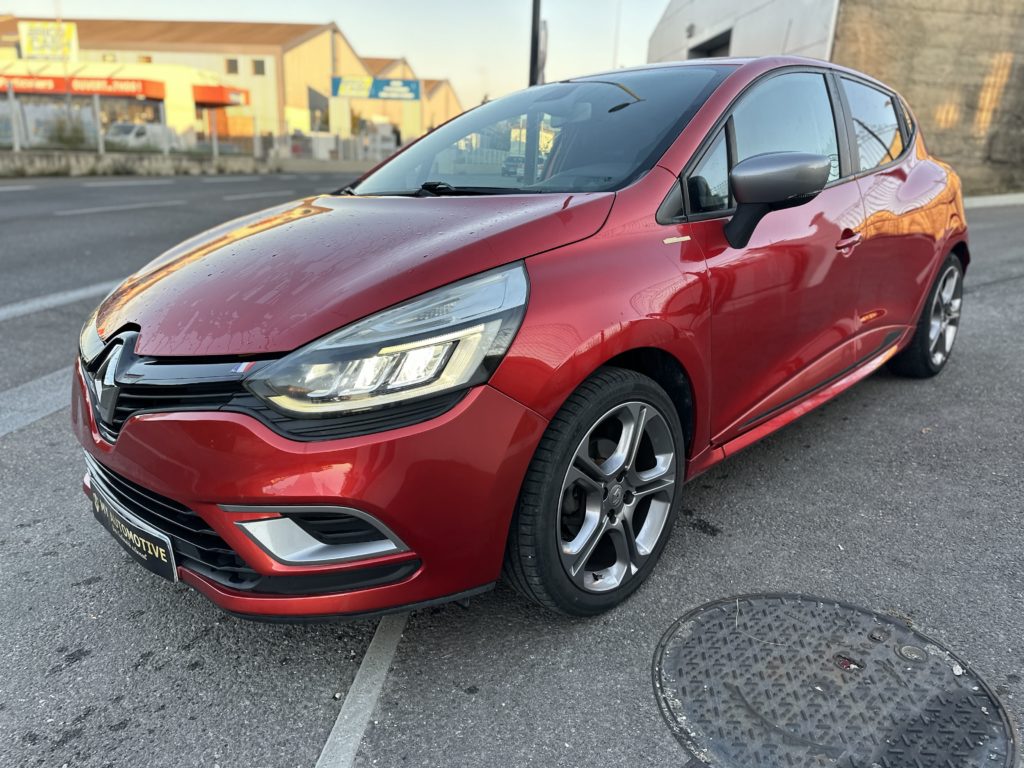RENAULT Clio IV 0.9 TCE 90 INTENS GT LINE LED PURE VISION, berline, rouge foncé, 5 cv, 5 portes, première mise en circulation le 13/02/2017. 5 places OPTIONS ET ÉQUIPEMENTS : Audio – Télécommunications : – Bluetooth – GPS – Prise audio auxilliaire : usb – Téléphone Bluetooth – commande Conduite : – Allumage automatique des feux – Démarrage sans clé – détecteur de pluie – limiteur de vitesse – pack sport – régulateur de vitesse Extérieur : – Aide au stationnement – Radar de recul – radar d’aide au stationnement – rétroviseurs rabattables – rétroviseurs électriques Intérieur : – Fermeture à distance – climatisation : automatique – ordinateur de bord – pack confort – pack électrique – verrouillage automatique des portes en roulant – vitres surteintées – vitres électriques – volant cuir – volant sport Pack : – Anti démarrage – volant multifonctions – volant réglable – Écran multifonction Sécurité : – ABS – Aide au demarrage en pente – Alarme – fixations ISOFIX – roue de secours Carte grise possible sur place, Historique du véhicule, Pack business, Start and stop, Keyless Go, Feux diurne a LED, becquet, jantes anthracites, peinture métallisée, 4 vitres électriques, écran tactile,